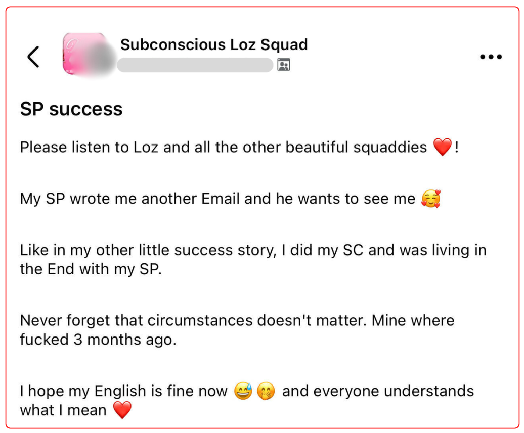 Another dropped her neediness, changed her assumptions, and chose to know. She became friends with her old SP as intended while happily loved up with her current SP.