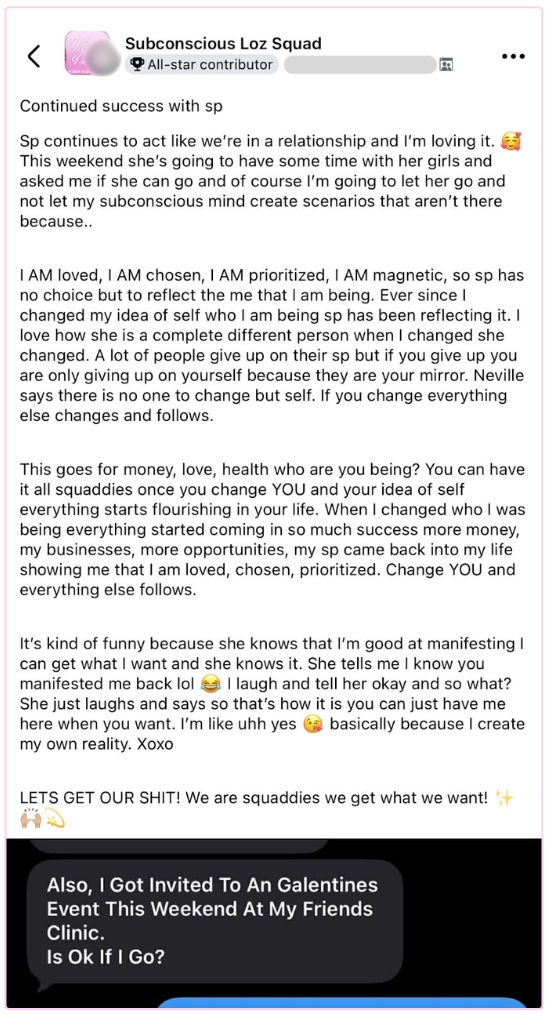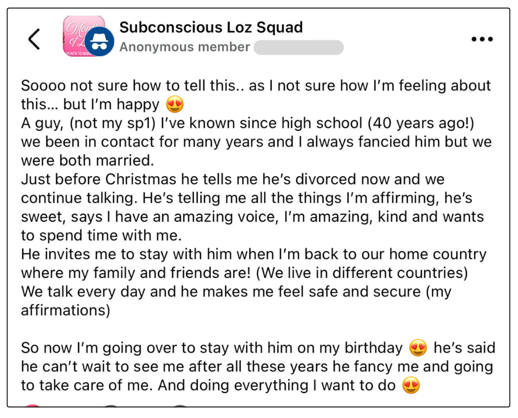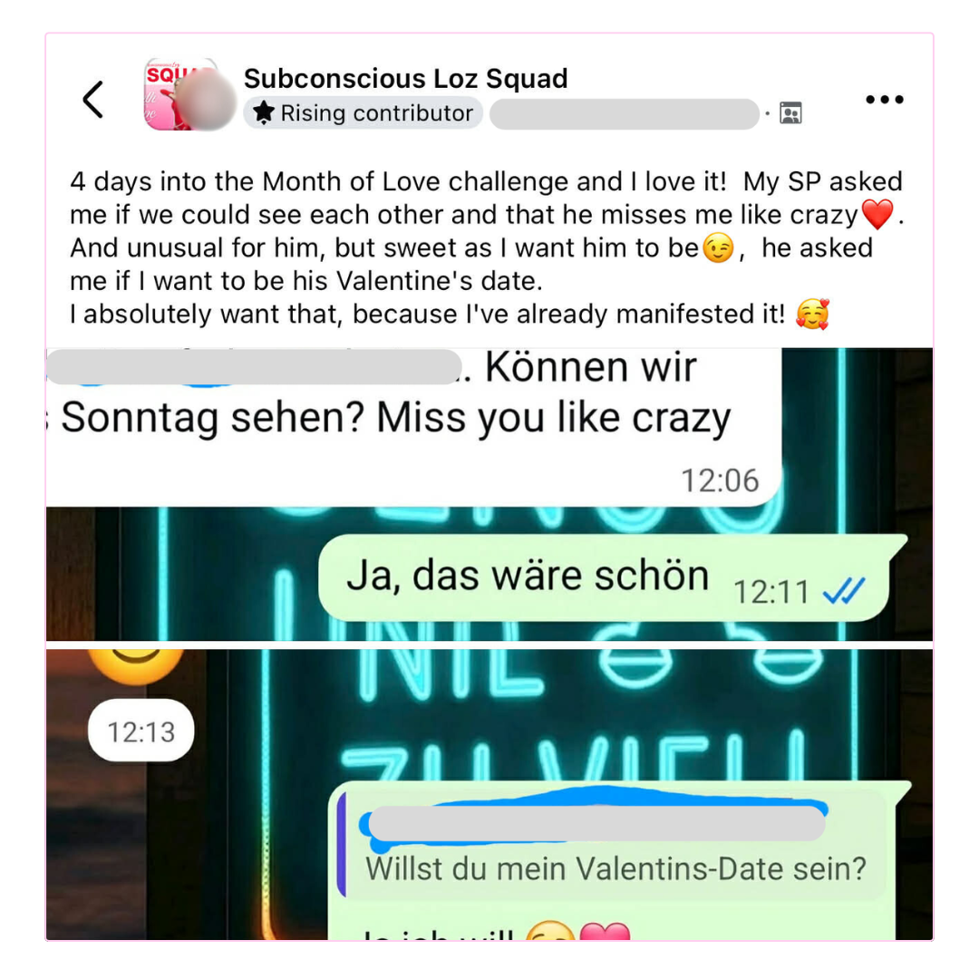 She changed her fears of being insecure and unsafe in love and manifested an SP from the past making future plans with her.