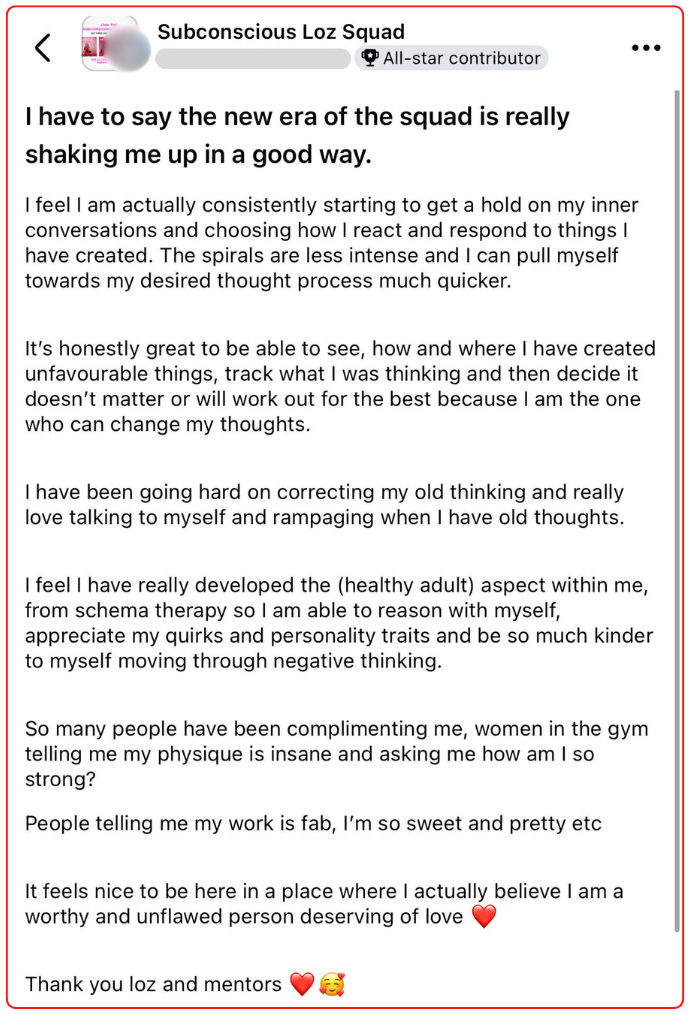 Another went from letting negative thoughts run everything to shutting them down instantly and deciding who she is. Now her Specific Person prioritises her, and she’s standing in her power.